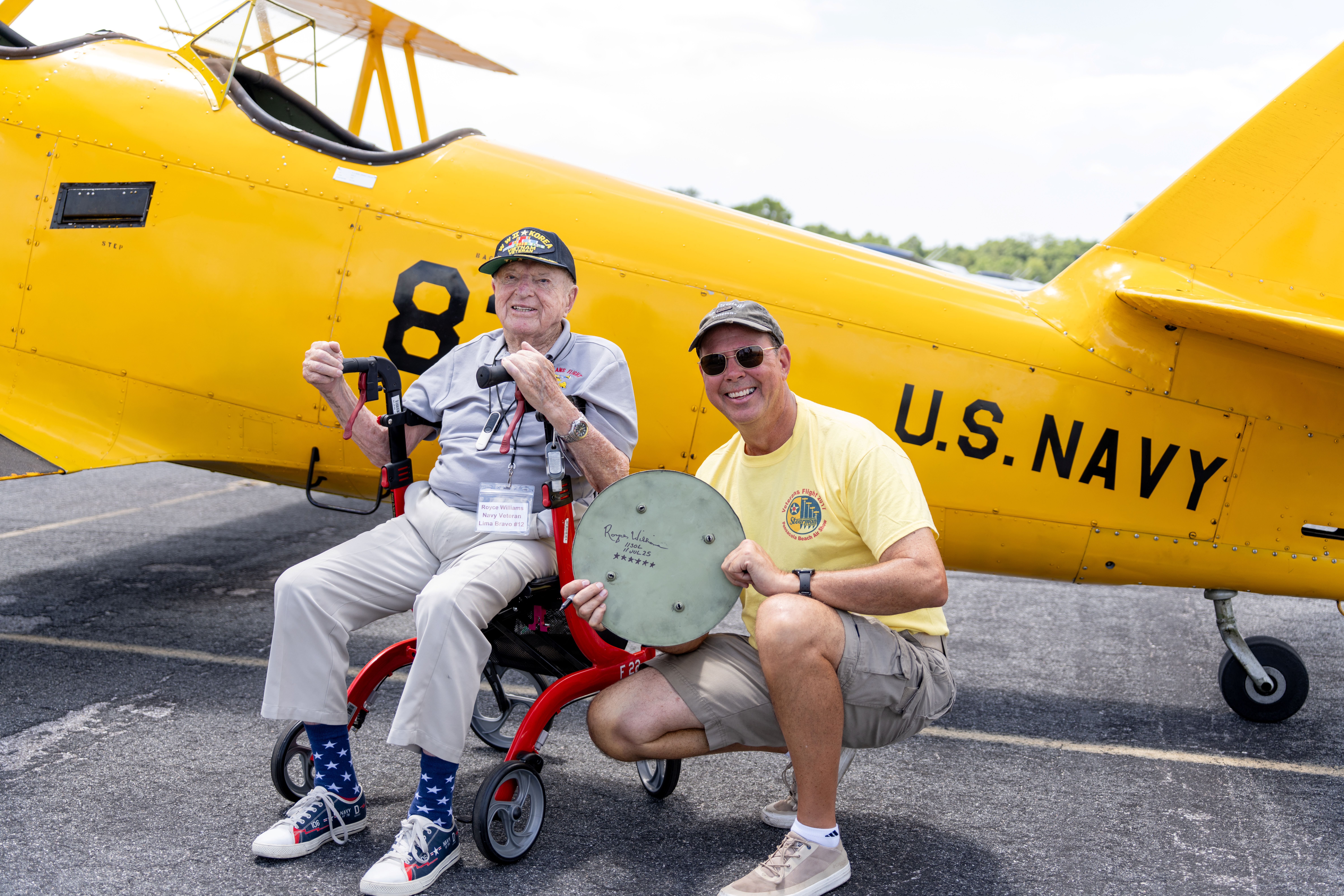Williams signed one of the wheel hubcaps on Foley’s N3N, and his name is now displayed on the aircraft to commemorate the historic flight. Webb said the experience was among the most meaningful of his aviation career.